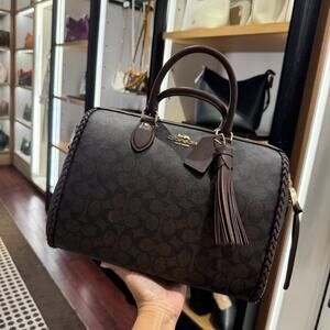 Coach CCE36 Rowan Large Satchel Bag In Signature With Fringe Walnut/maple