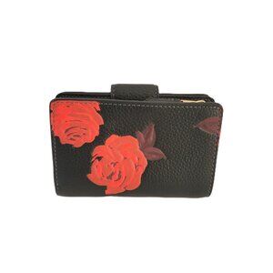 Black pebbled leather w/ Red embossed "Floral" print on back and front