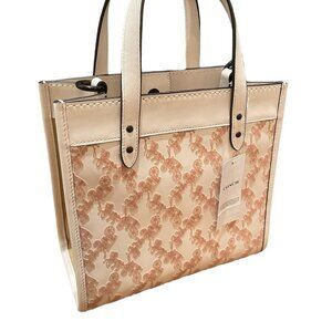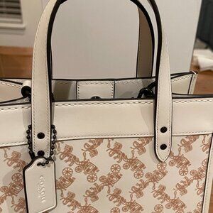 Coach CD750 Textured Field Tote 22 Horse & Carriage in Chalk White
