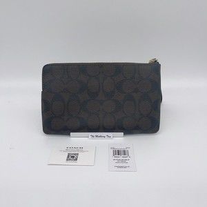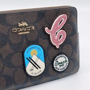 Coach CF457 Large Corner Zip Wristlet In Signature Canvas With Ski Patches NWT.