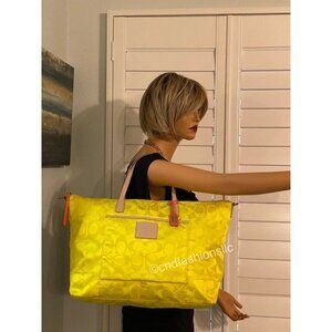 Coach CITRINE "LEGACY WEEKEND" Signature Nylon Weekender Tote w/Detachable Strap
