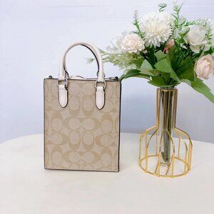 Coach CJ494 North South Mini Tote In Signature Canvas IN LIGHT KHAKI CHALK