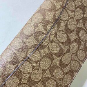 Style# CJ616 Measurements: Length: 2.5" Height: 10.5" Width: 5.5" Materials: Signature coated canvas and smooth leather Fabric lining Handle: Detachable handle with 9" drop Strap: Detachable strap with 21.25" drop for shoulder or crossbody wear Features: Outside open pocket Inside zip pocket Inside multifunction pocket Snap closure