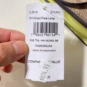 Coach CJ616 Morgan Shoulder Bag in Signature Canvas, Silver/Khaki/Pale Lime