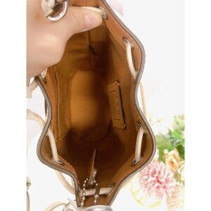 Coach CJ661 Mini Dempsey Bucket Bag In Signature Jacquard With Rainbow Stripe And Coach Patch IN Khaki Multi