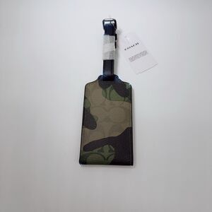 Coach CM033 Luggage Travel Name Tag In Signature Canvas With Green Camo Print