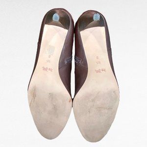 Coach COMFY Ankle Booties Brown Leather Gold Stud Accents 3” Heel Sz 9.5