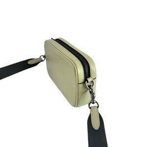 Black polyester blend soft canvas and Pistachio smooth leather crossbody strap