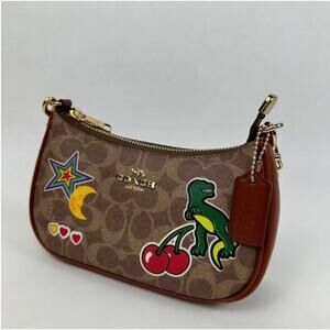Coach CW321 Teri Mini Crossbody Bag In Sig With Sticker Print IN Tan Multi