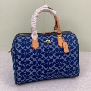 Brand new with tag and gift receipt. COLOR: denim/Gold/Den Gold/Natural Brand new with tag and gift receipt. Style Number CY699 Measurements Length: 11.75" Height: 8.25" Width: 7.0" Materials Signature denim and vachetta leather Fabric lining Handle Handle with 4.5" drop Strap Detachable strap with 20" drop for shoulder or crossbody wear Features Outside zip pocket Inside snap and zip pockets Zip closure