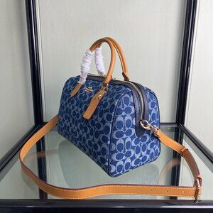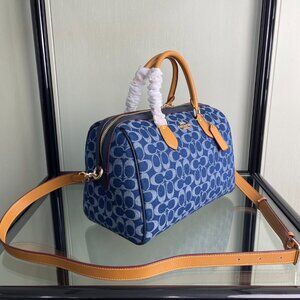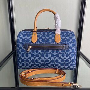 Brand new with tag and gift receipt. COLOR: denim/Gold/Den Gold/Natural Brand new with tag and gift receipt. Style Number CY699 Measurements Length: 11.75" Height: 8.25" Width: 7.0" Materials Signature denim and vachetta leather Fabric lining Handle Handle with 4.5" drop Strap Detachable strap with 20" drop for shoulder or crossbody wear Features Outside zip pocket Inside snap and zip pockets Zip closure