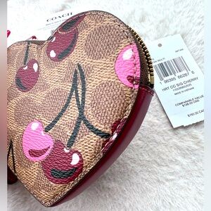 Coach CZ477 Leather Heart Coin Case With Cherry Print