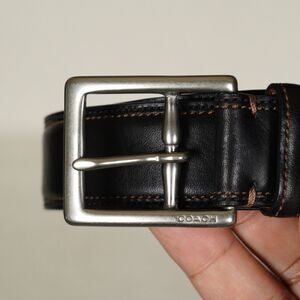 For sale is a Coach Calfskin Leather Belt Mens 34" Brown Solid Brass Harness Buckle 3752 G10