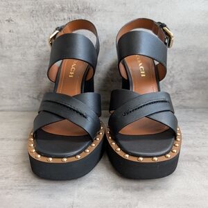 Coach Callie Leather Black Block Heel Sandal Women's Size 8 NIB