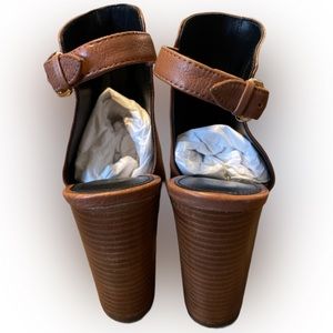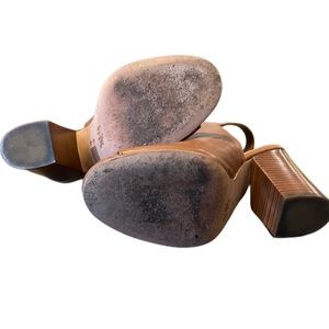 Coach Camel Leather Peep-Toe Ankle Boot with Gold Chain in size 8;