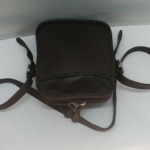 7.25 x 5.5 x 2. Cross Body strap adjusts to approx 19 - 21 inches.