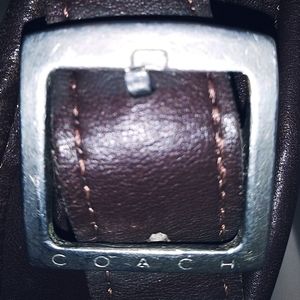 Outside slip pocket and inside slip pocket. Double zipper closure. Zipper works.