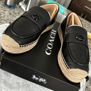 Black Leather espadrilles, size 8 however they run big which is why I’m selling them. These espadrilles are great, comfort meets classy, can be worn with a button up and jeans or a t-shirt and jeans. Worn once, can tell by the pictures.