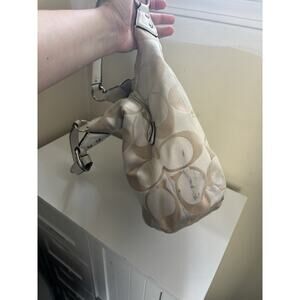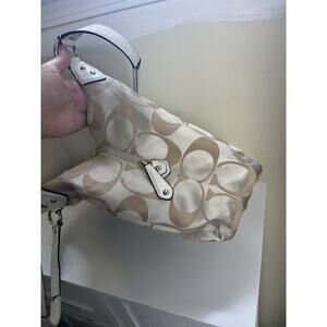 Coach Campbell Signature Hobo Canvas Handbag Purse Tan Leather Trim F24742