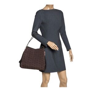 🍂✨Coach Canvas & Leather Shoulder Bag – Brown with Gold-Tone Hardware