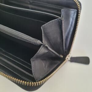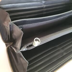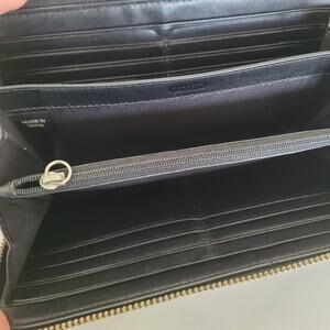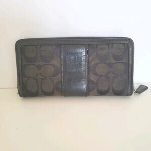 Coach Canvas Leather Wallet Black Zip Around Large Clutch Logo Classic