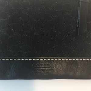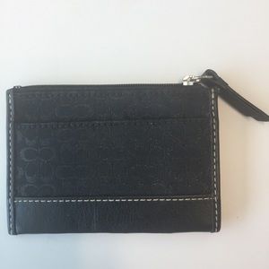 Super cute and great size black Coach card wallet. Perfect size to keep your cards and change organized in a wristlet or cross body. This case is used but in great condition. Has a zip top and a card pocket on the outside. Can easily fit cards and cash inside as well!