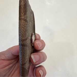 Good condition. Coach signature card holder brown canvas with red leather trim. Silver coach medallion.