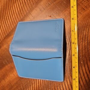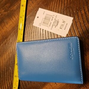 New with tags. ID window, multiple slip pockets. 1 outside slip pocket. Blue leather.
