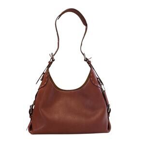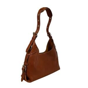 This Coach Cargo Shoulder Bag (style CT722) in Burnished Amber is a refined blend of structure and softness. Crafted from natural grain leather with a suede-lined interior, it features buckle hardware, rivet detailing, and a magnetic snap closure. The crescent silhouette and adjustable strap offer versatile styling, while the top handle adds a touch of elegance. Perfect for everyday wear, minimalist wardrobes, or understated luxury.