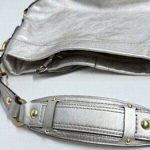 Coach Carly Shoulder Bag in shimmery silver and gold tone brass hardware