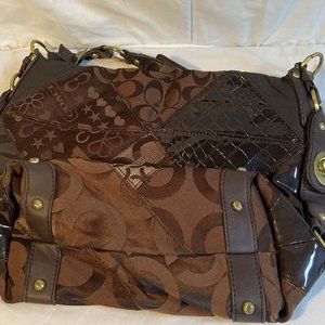 Coach Carly Signature Patchwork Chocolate Brown Shoulder Bag