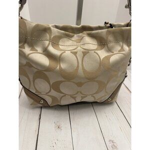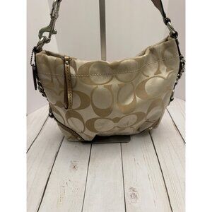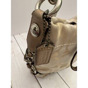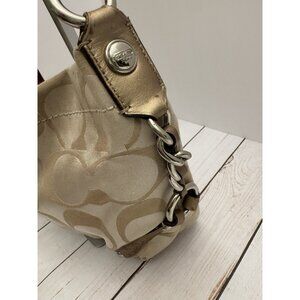 Coach Carly Signature Sateen Khaki/Gold F15250 Shoulder Bag W/Hang Tag 10” GUC*