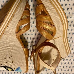 Coach: Caroline Strappy Wedges Sandals BEACH theme- tan leather straps- 6 B