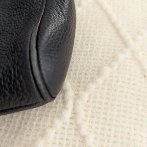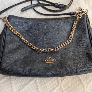 This Coach crossbody bag in black so soft pebbled leather exudes timeless elegance with its structured silhouette and gold-tone chain strap.