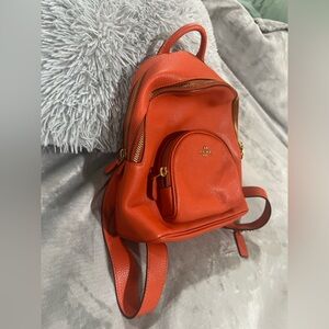 Bright orange leather with gold accents. Compact and stylish design. Perfect for daily use.