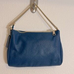Coach Carrier Blue Pebbled Leather Mini Shoulder Bag With Luxe Gold Chain Strap