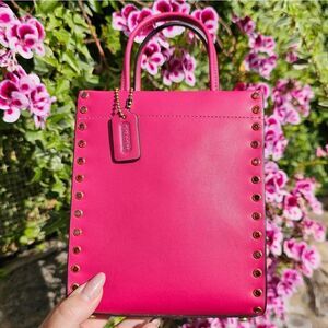Reimagined for today, this buttery soft glovetanned leather mini tote is based on the iconic "Cashin Carry" from 1969, a top-handle style by Coach's first lead designer, Bonnie Cashin. Detailed with crystal rivets for a touch of sparkle and secured by a magnetic snap closure, the petite style has room for cash, cards, keys and other accessories. Attach the adjustable strap to wear on the shoulder or crossbody.