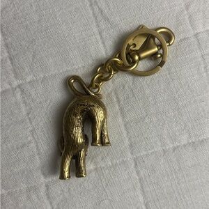 Elegant gold cat charm from Coach. Features a secure clasp. Perfect for your bags!
