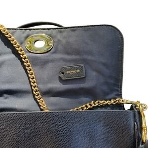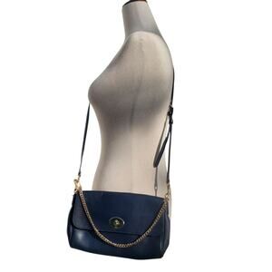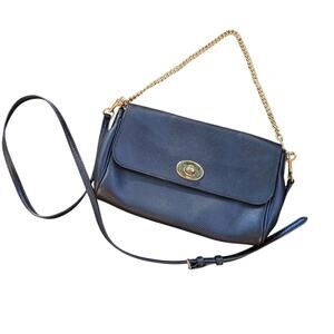 Coach Chain Crossbody Navy Pebbled Leather Gold Hardware