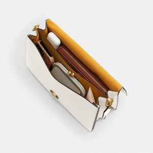 Soft grain leather Inside snap and multifunction pockets Snap closure fabric lining Outside zip pocket Detachable chain strap with 8 1/2 drop Detachable short strap with 7 1/2 drop Detachable long strap with 21 1/2 drop for shoulder or crossbody wear Fits an iPad 11 1/2 (L) x 8 (H) x 3 1/2 (W) Style No. CY920