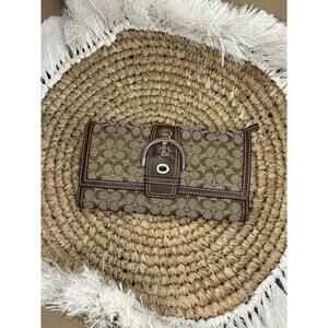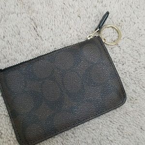 Dark brown coach change pouch. Very spacious, I used it to carry my cards on my keys. Haven't used it in a while but still in great condition.