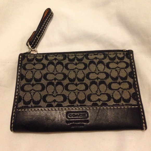 Authentic Coach change purse/ keychain with Black "C" logo and black liner. Item has a couple scuff marks on the leather and is missing the keychain.