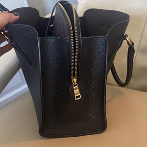 Coach Channing Carryall Black Leather Satchel with Gold Accents