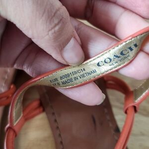 Coach Charleen Tstrap Orange Leather Slingback Flat Sandal Gold Accent 7.5