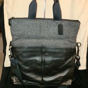 Excellent used condition Coach Charles Foldover Tote in Wool. I only used this bag like 3 times. It can be worn crossbody with it folded over, or carry it by the handles at its full length. It has a zippered pocket on one side and two open pockets on the other side.