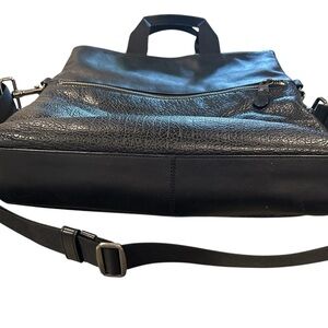 Elegant and versatile black leather tote bag, perfect for any occasion. Features a sleek design with durable handles and a detachable strap for convenience.