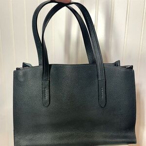 Minimalist designer tote, wearable luxury, commuter-friendly work bag, timeless silhouette.