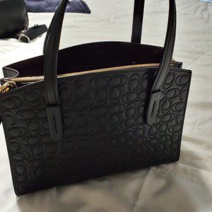 Omg! This purse is basically new. Absolutely mint condition black leather handbag with embossed "C's" on it. I've added the little golden "C" to compljment it. It's gorgeous! Used maybe twice. Unfortunately I'm still stuck in the diaper bag era and this beauty needs a home!