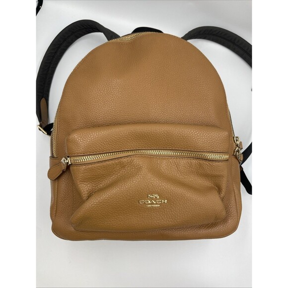 Coach Charlie Tan Pebble Leather Medium Large Backpack Purse Camel Brown CLEAN