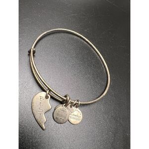 Coach silver skinny bangle bracelet with 1" diameter charm. Charm has 4 Coach Cs on one side, and Coach script on the other.
